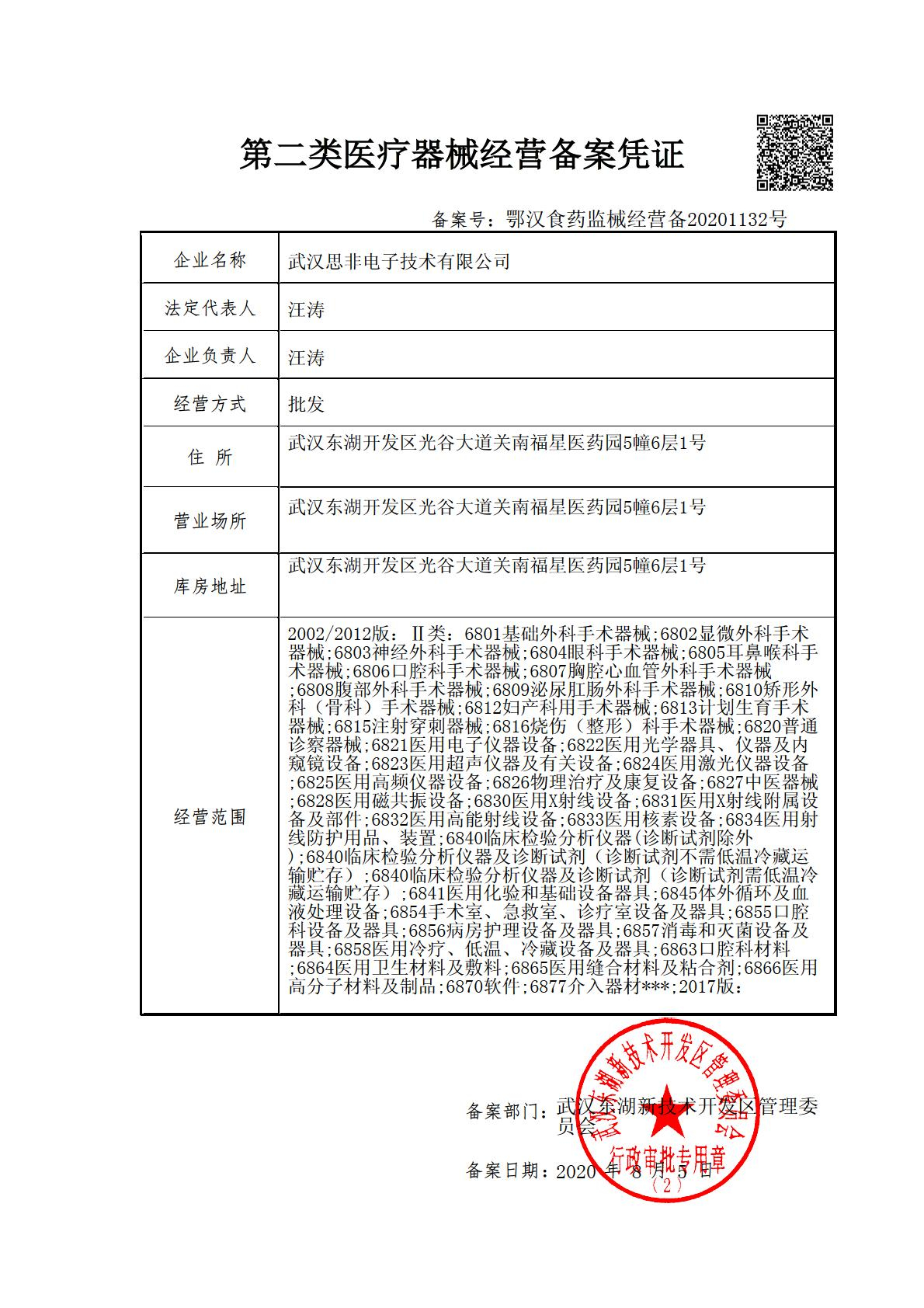 二類醫療器械經營備案憑證