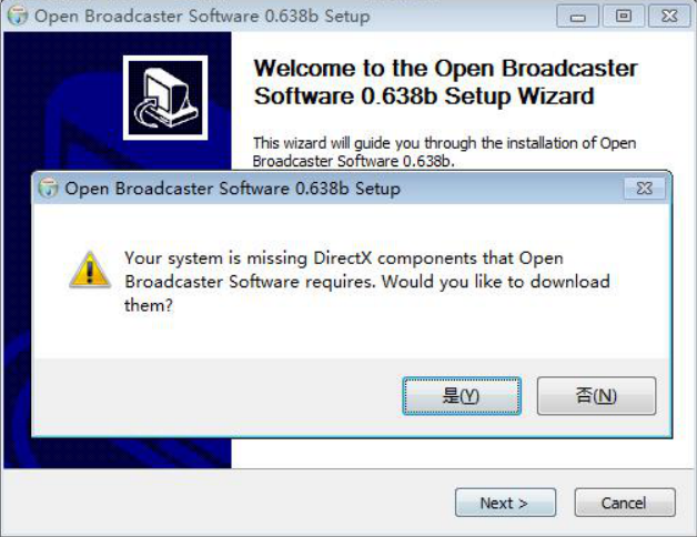 2. Windows系統安裝OBS軟件如出現以下情況,請先安裝補丁插件,插件下載地址:https://pan.baidu.com/s/1IUv-dVlPJXPPknzJSPXmvg