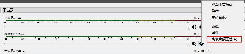點擊混音器里的麥克風齒輪,選擇“高級音頻屬性”,將要監聽的麥克風選為“監聽并輸出”