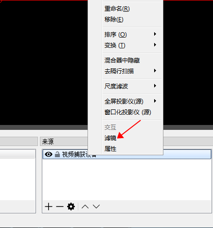 6. 為了使音視頻同步,設置視頻延時(音視頻同步正常,可跳過此環節)右擊“視頻捕獲設備”,選擇“濾鏡”