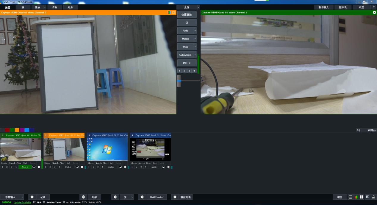 5. 設置好后點擊OK,采集卡采集到的畫面就會顯示在vMix上了,此文檔已添加4路信號;
