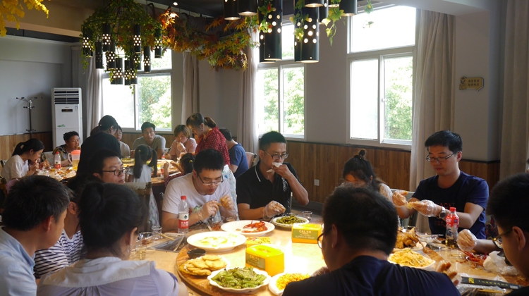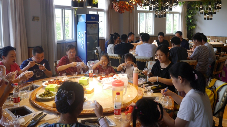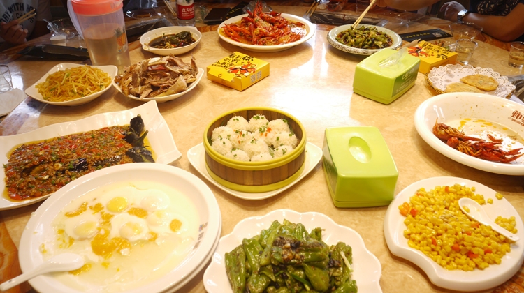 7月20日,正值三伏天,一大早太陽就火辣辣的,但是我們的心情很興奮。一路上,在數(shù)字游戲的歡聲笑語中,2小時(shí)的車程不知不覺就過去了。去潛江吃蝦子,首選當(dāng)然是最有名、人氣最旺的蝦皇總店了。店里吃蝦的氣氛很濃,生意很火爆,我們等了一會(huì),就有了座位。