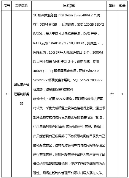 二、磋商內(nèi)容:媒體資源管理系統(tǒng)1套;