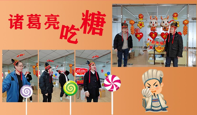 下午,在公司舉行聯歡活動。玩游戲,抽獎品。讓人捧腹大笑的“諸葛亮吃糖”小游戲