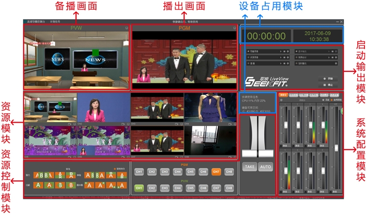 思非電子LiveView系列導播直播一體機是一套廣電級專業音視頻導播切換系統,可以完成導播切換、字幕機、調音臺、硬盤播出系統、虛擬摳像、錄像機、線性編輯等工作,適用于現場直播、廣電系統、網絡直播、視頻會議等的現場采編錄播和后期視頻制作、錄制,可生成MP4、TS、ASF、WMV、FLV、AVI等格式文件,為互聯網、教育、廣電系統、政府、企業多媒體信息化建設的優選方案。
