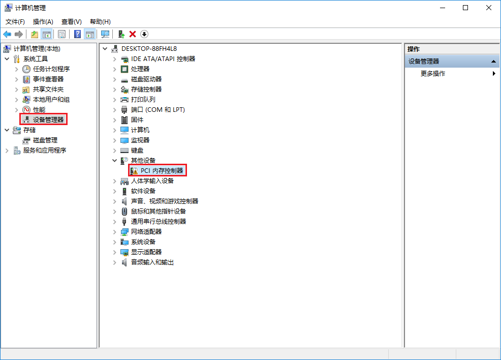 驅動未安裝前,設備管理器里的其他設備顯示了個“PCI內存控制器”