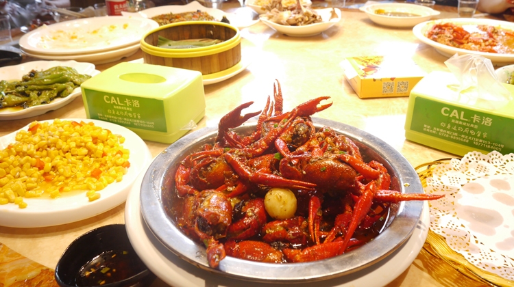 7月20日,正值三伏天,一大早太陽就火辣辣的,但是我們的心情很興奮。一路上,在數(shù)字游戲的歡聲笑語中,2小時(shí)的車程不知不覺就過去了。去潛江吃蝦子,首選當(dāng)然是最有名、人氣最旺的蝦皇總店了。店里吃蝦的氣氛很濃,生意很火爆,我們等了一會(huì),就有了座位。