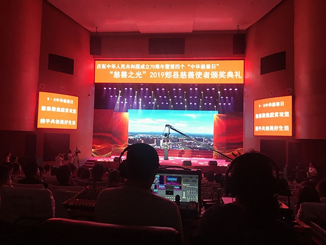 我司技術人員于9月4日下午到達郟縣,下午調試了一下導播一體機和周邊設備,沒有問題。5號一整天和合作伙伴及電視臺完成慈善活動直播,直播現場很順利,運行良好。并教電視臺操作人員設備如何使用和相關注意事項。