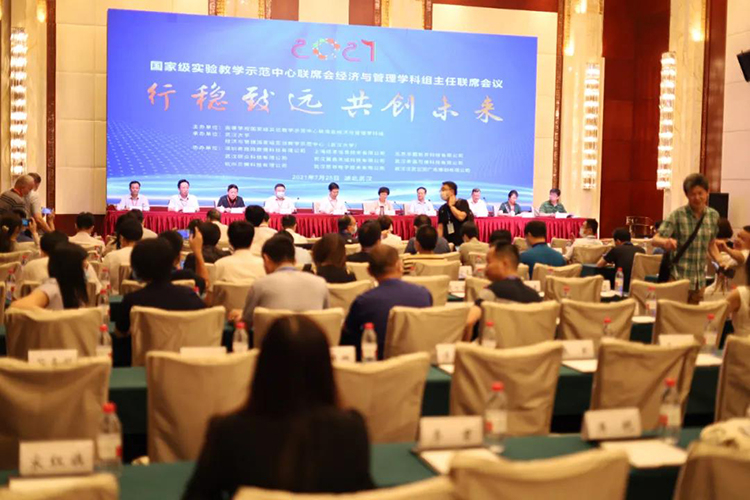2021年7月25日,2021年國家級實驗教學示范中心聯席會經濟與管理學科組主任聯席會議在湖北省武漢市洪山賓館舉行。武漢大學黨委副書記沈壯海,湖北省教育廳高等教育處二級調研員張錦楓,高等學校國家級實驗教學示范中心聯席會工作委員會副秘書長、北京大學實驗與設備管理部副部長周勇義,高等學校國家級實驗教學示范中心聯席會經管學科組組長、山東大學商學院院長戚桂杰等領導與嘉賓出席開幕式并分別發表了講話。開幕式由武漢大學實驗室與設備管理處處長雷敬炎主持。