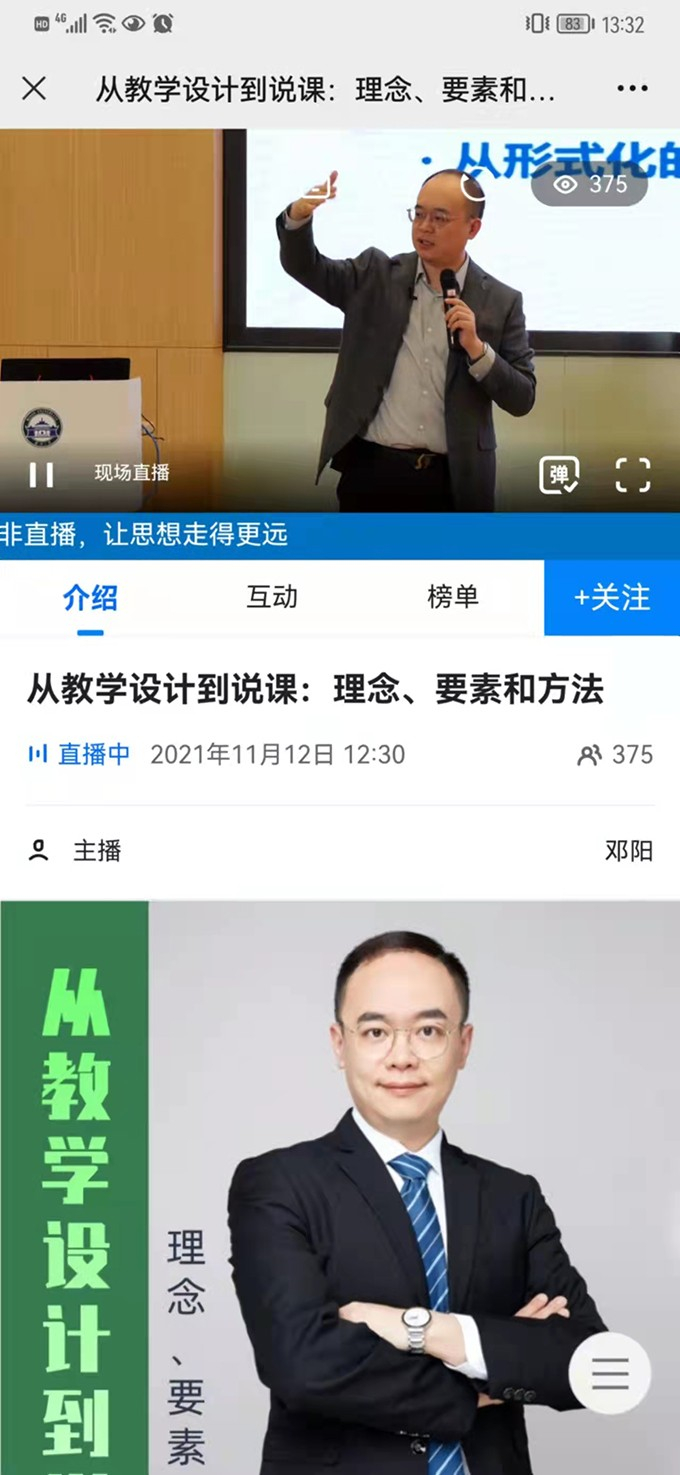11月12日下午,由武漢大學教發中心組織的由華中師范大學鄧陽教授授課的“從教學設計到說課:理念、要素和方法”活動,在武漢大學教1會議室舉行,本次活動直播由思非直播現場技術支持、微贊平臺同步互動直播。