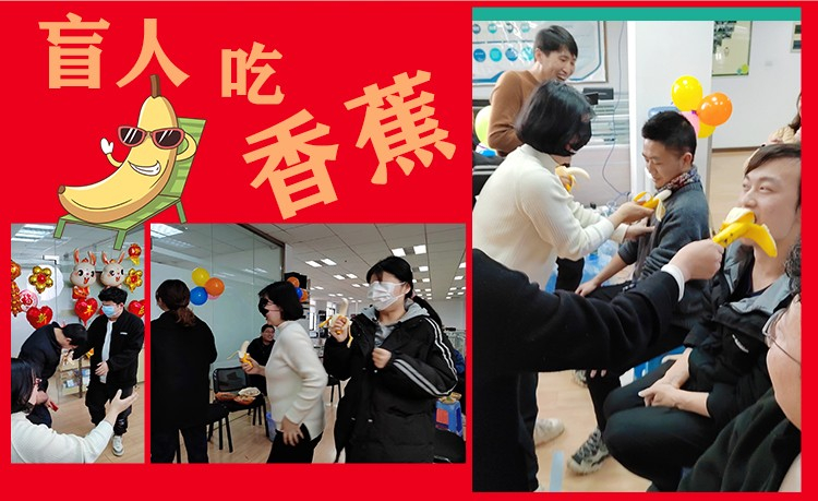 全場笑成一團的“盲人吃香蕉”小游戲